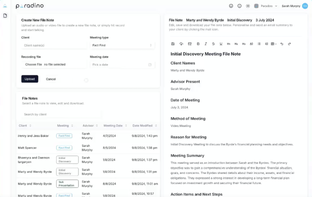 Paradino.ai transformed the way financial advisers handle documentation. What once took hours is now a streamlined, AI-driven process that delivers speed, accuracy, and customisation. The impact speaks for itself: